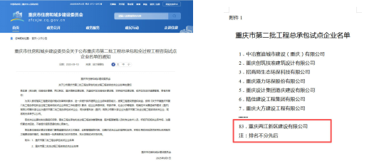 喜報!兩江建設(shè)公司成功入選重慶市第二批總承包試點企業(yè)